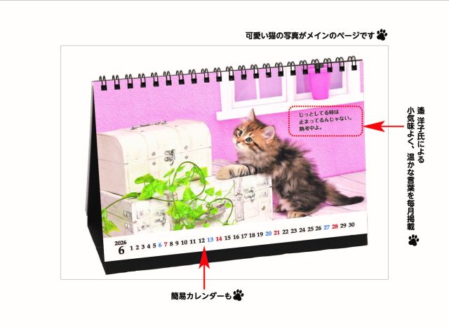 上手くいく日も、いかない日も、子猫たちに癒され、遙洋子氏の小気味よく、温かな言葉に励まされる、大人可愛いデザインのカレンダーです! https://item.rakuten.co.jp/koinyan-shop/10000013/